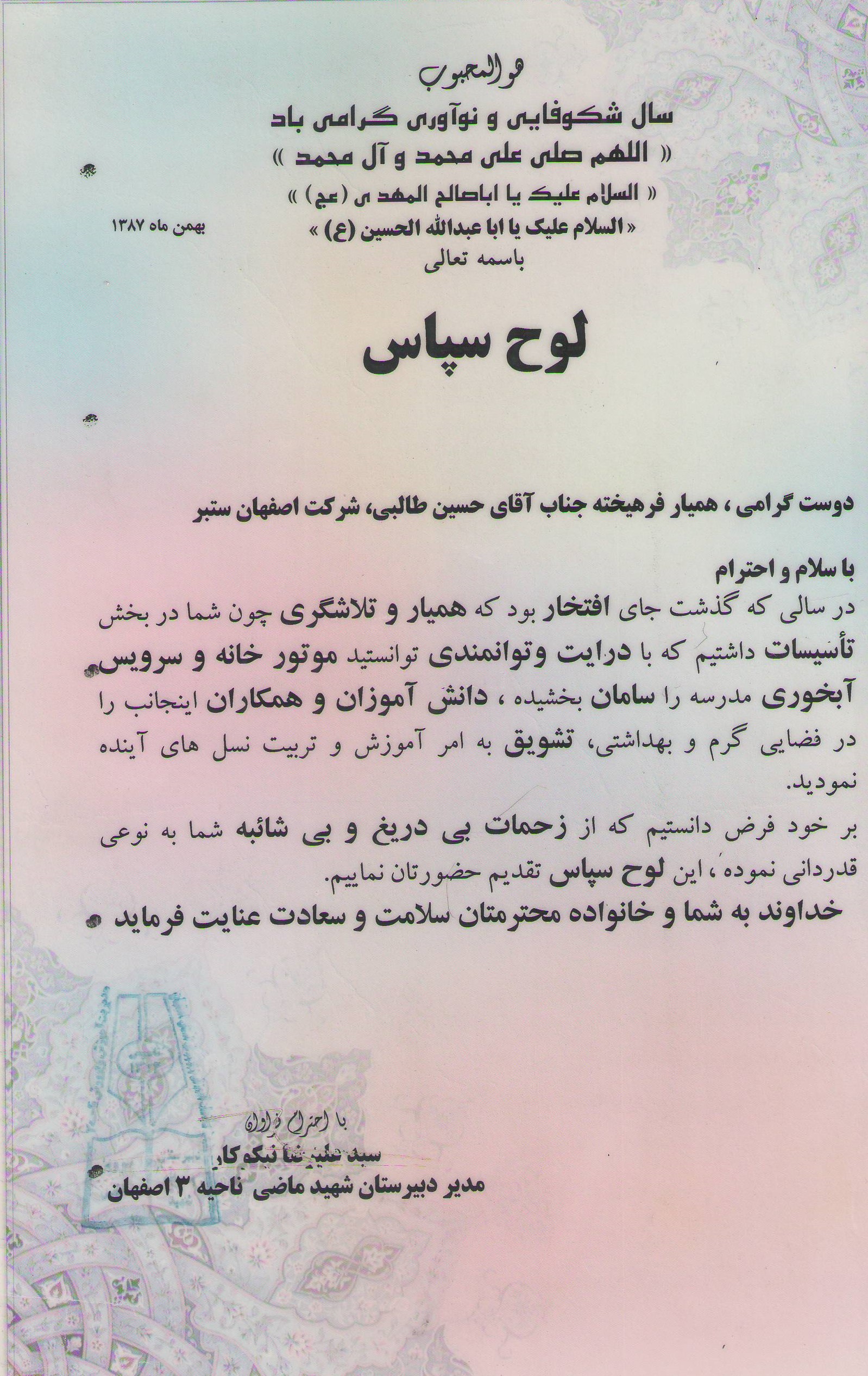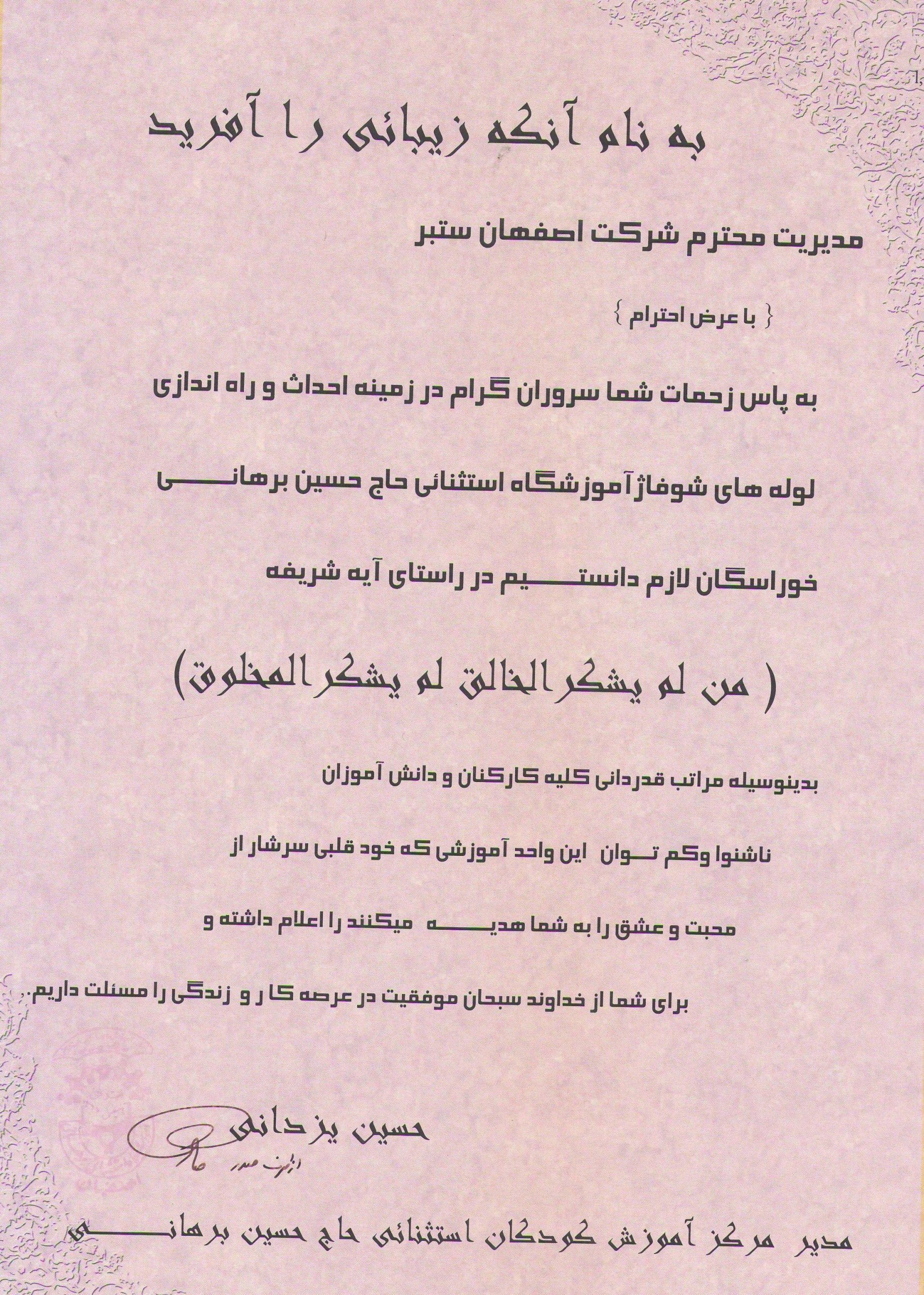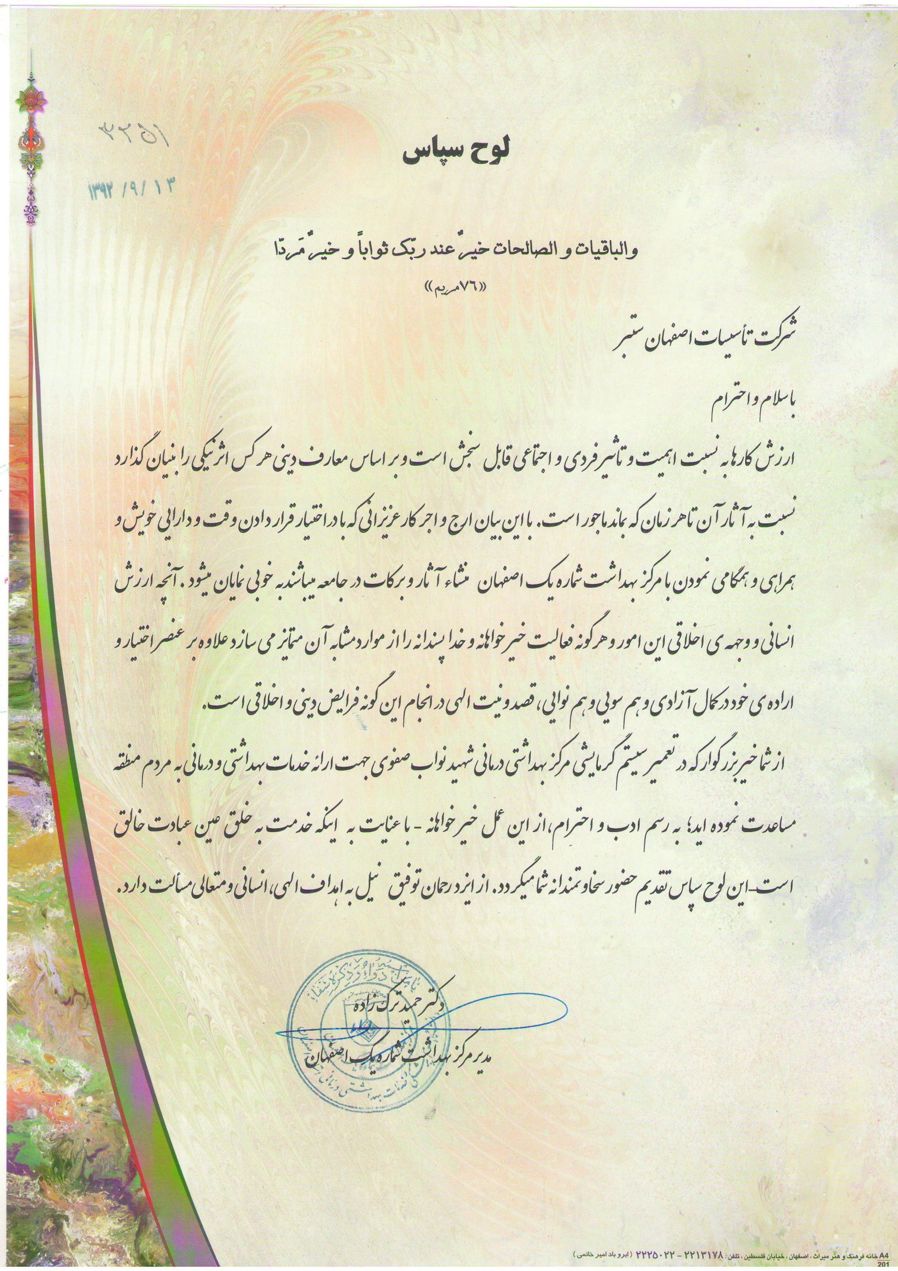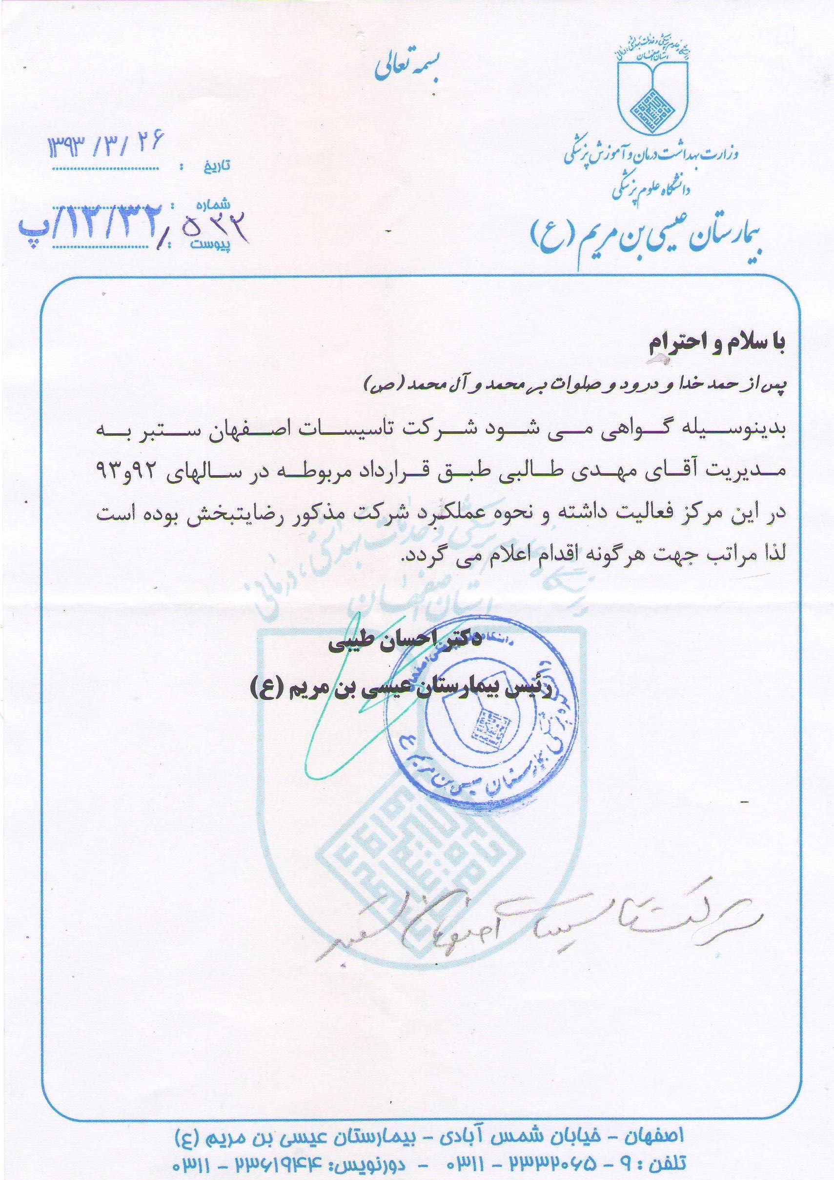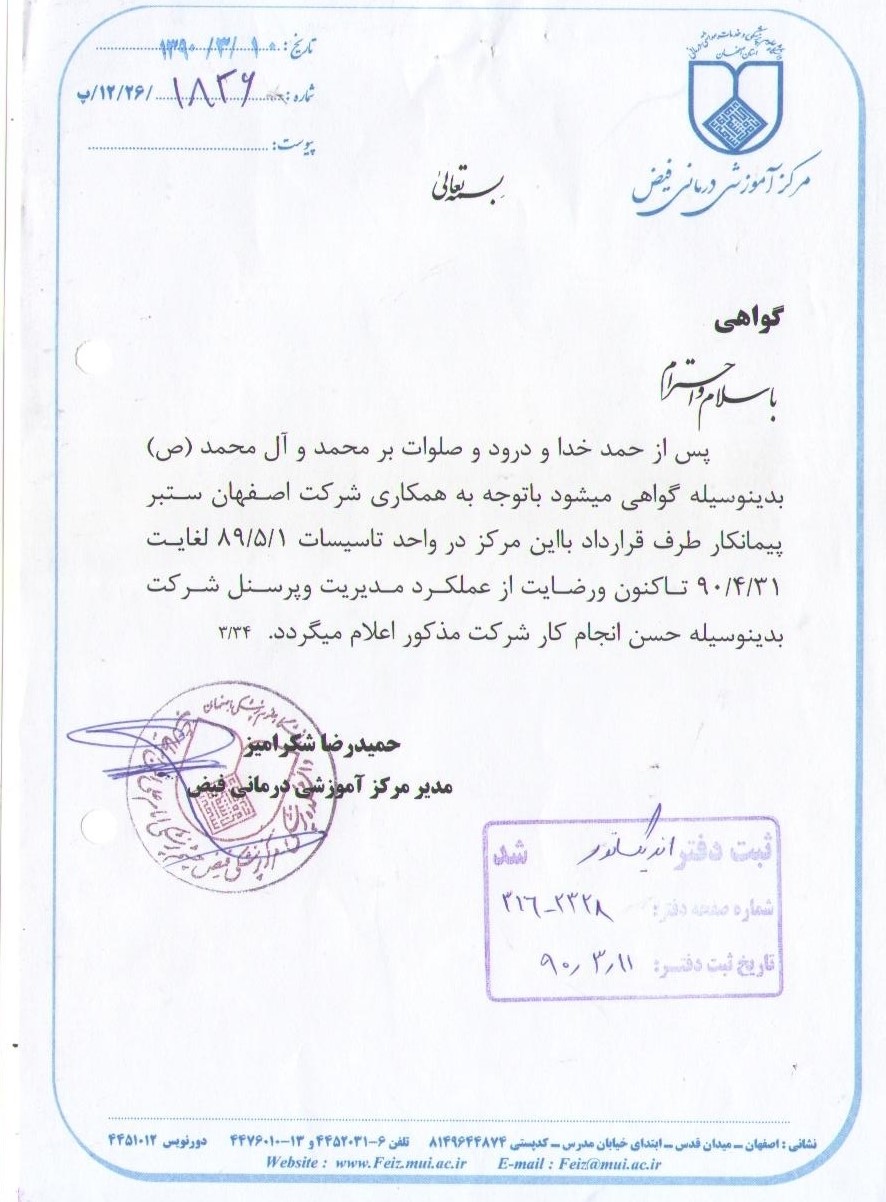 - عضوانجمن صنفی شرکتهای تاسیساتی وساختمانی استان اصفهاندارای کدگازرسانی ازاتحادیه تاسیسات مکانیک وسازمان نظام مهندسی استان اصفهان